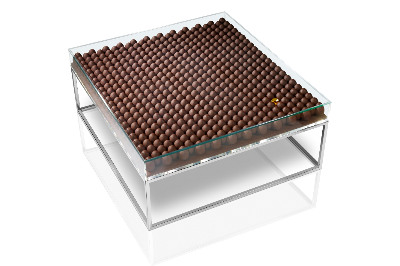 Be Different, née du dialogue entre Pierre Hermé et le photographe culinaire Patrick Rougereau, composée de 495 oeufs en chocolat et d'un oeuf en cristal de Daum. Expérience unique de création d'un macaron sur mesure aux côtés de Pierre Hermé. Mise à prix : 10 000 € Crédit photo : Patrick Rougereau.