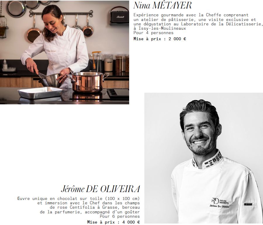 Chaque chef participant était invité à imaginer une oeuvre éphémère, une création originale, ou une expérience exclusive à vivre: atelier d’initiation, dégustation en laboratoire, visite privée…  Ces lots uniques seront mis aux enchères lors de la vente, le 1er décembre 2025.