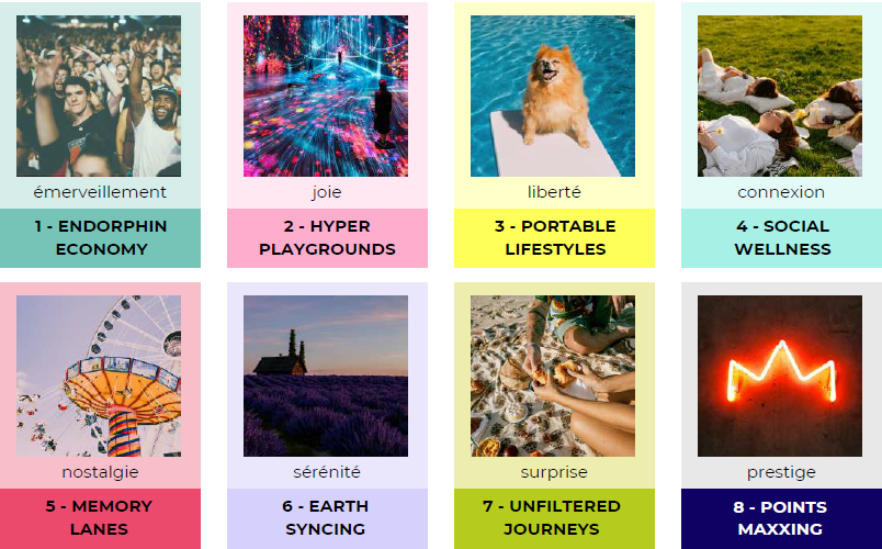 5-L’ère de la nostalgie / 6-La vie au rythme de la nature / 7-Voyages sans filtres / 8-L’émotion à portée de points