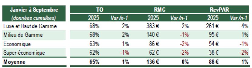 Source : In Extenso, Tourisme, Culture & Hôtellerie. Extraits communiqué de presse sur les performances de l’hôtellerie française au mois de septembre 2025.