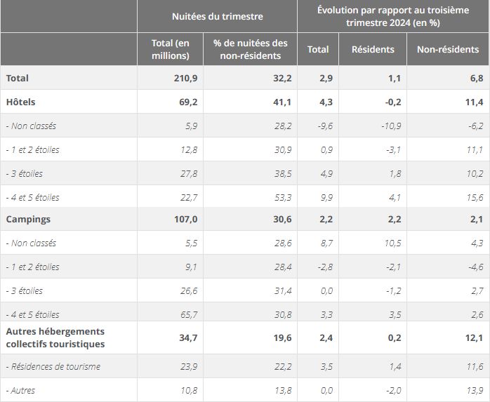 Nuitées dans les hébergements collectifs touristiques – troisième trimestre 2025
