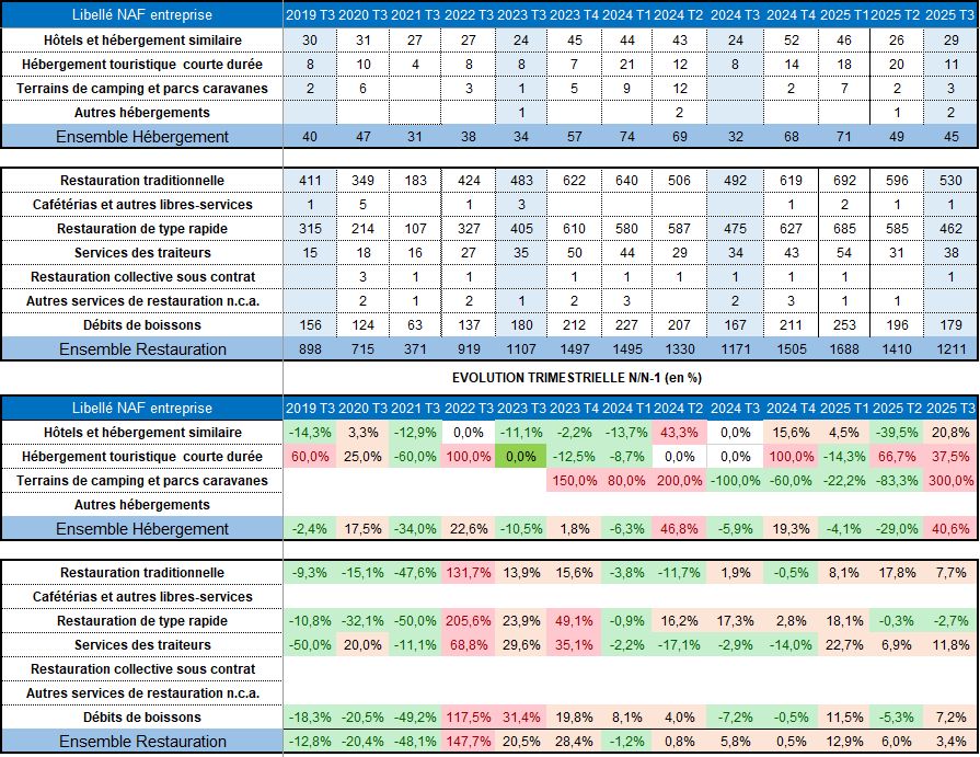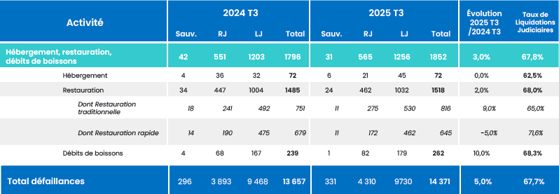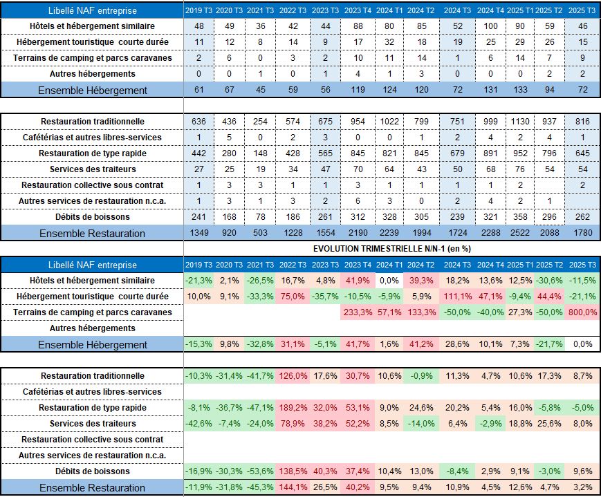 Source du tableau :  Altares Défaillances CHR 2025T3– retraitement HR-infos